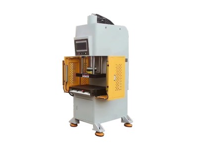 单柱20吨伺服液压机采用单柱结构,主要由机架、冲压滑块、操作工作台、四导向柱、上主油缸、比例液压系统、伺服电气系统、压力传感器、管路等配件组成。伺服液压机主要适用于粉末成型热冷压封装工艺。有单工位和双工位二种机型。
