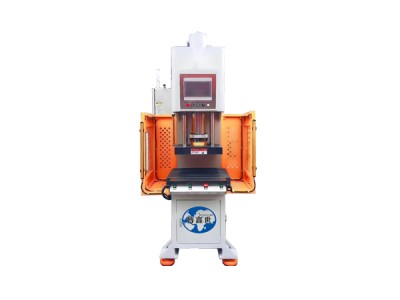 单柱20吨伺服液压机采用单柱结构,主要由机架、冲压滑块、操作工作台、四导向柱、上主油缸、比例液压系统、伺服电气系统、压力传感器、管路等配件组成。伺服液压机主要适用于粉末成型热冷压封装工艺。有单工位和双工位二种机型。